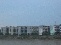 Rex-Murphy-like bronze mask from 4900 year-old Shu kingdom, Sanxingdui near Chengdu. | Changing society: small red star smothered by large advertisements, Jiangyou. | Apartment buildings, Jiangyou: Communism is not love. Communism is a hammer which we use to crush the enemy (Mao Tse-Tung). |